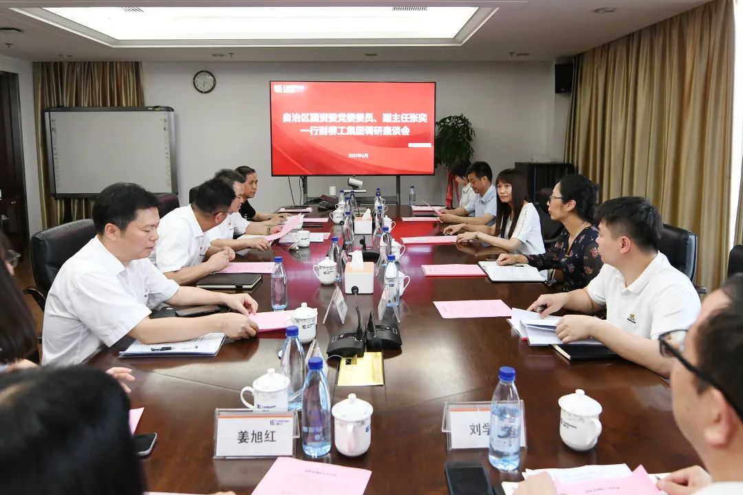 6月1日,自治區國資委黨委委員、副主任張奕率調研組到柳工調研生產經營、黨建工作及主題教育工作情況。廣西柳工集團有限公司黨委書記、董事長鄭津陪同調研并主持召開座談會。