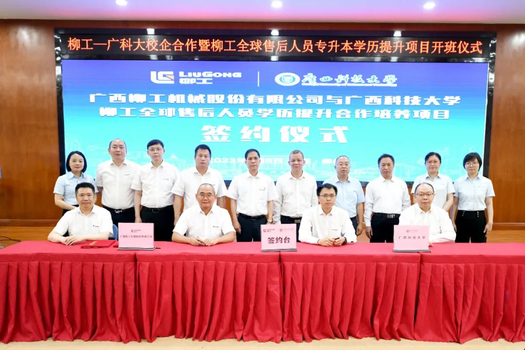 6月6日,廣西柳工機械股份有限公司與廣西科技大學校企合作暨柳工全球售后人員學歷提升合作培養項目在廣西科技大學國際學術報告廳正式啟動,現場舉行了項目簽約儀式和開班儀式。該項目是柳工深入開展學習貫徹習近平新時代中國特色社會主義思想主題教育,推動高質量發展、落實為民解憂辦實事的重要舉措之一。