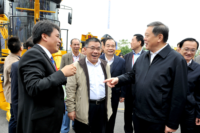 開幕式結束后,曾光安陪同張秀隆來到柳工展區觀摩了甘蔗收集轉運車的現場演示。曾光安詳細地介紹了柳工農機公司有關現代化農業裝備制造的發展布局及應用推廣情況,尤其是甘蔗生產全程機械化的發展情況。張秀隆肯定了柳工農機產品的發展,并鼓勵柳工向國際高端農機機械品牌看齊,盡快將各系列農用機械投入市場,推動廣西甘蔗生產機械化的水平。
