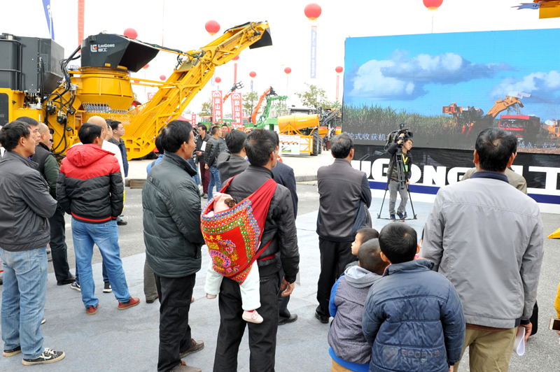 本屆博覽會除設立靜態展區,還在來賓市鳳凰鎮黃安村“雙高”糖料蔗基地舉行了國內外八家共10臺甘蔗收獲機生產廠家的現場演示,此外,甘蔗耕、種、管、收等40臺套農用機械也同時進行了實作演示。柳工農機公司生產的S918T履帶式和S935輪式甘蔗收獲機的表現得到區政府領導、行業專家、農機專業合作社代表的充分肯定。
