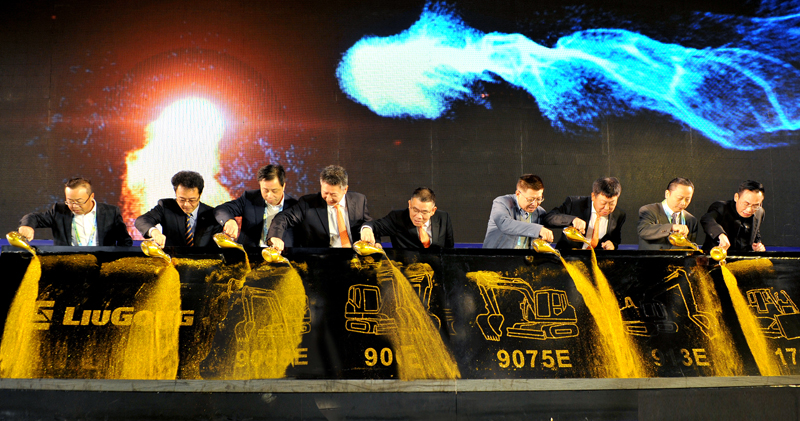 公司高層領導與受邀嘉賓共同發布2018推出的挖掘機新產品